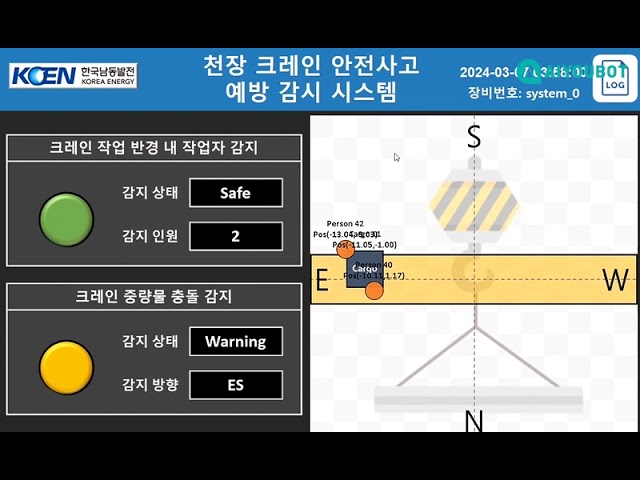 추가로 크레인과 크레인 사이 근접 이동시 충돌감지 알람 해주는 시스템 입니다.