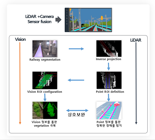 Machine vision+LiDAR 융합 기반 상호 보완작용으로 자율 주행을 적용할 수 있는 시스템입니다.